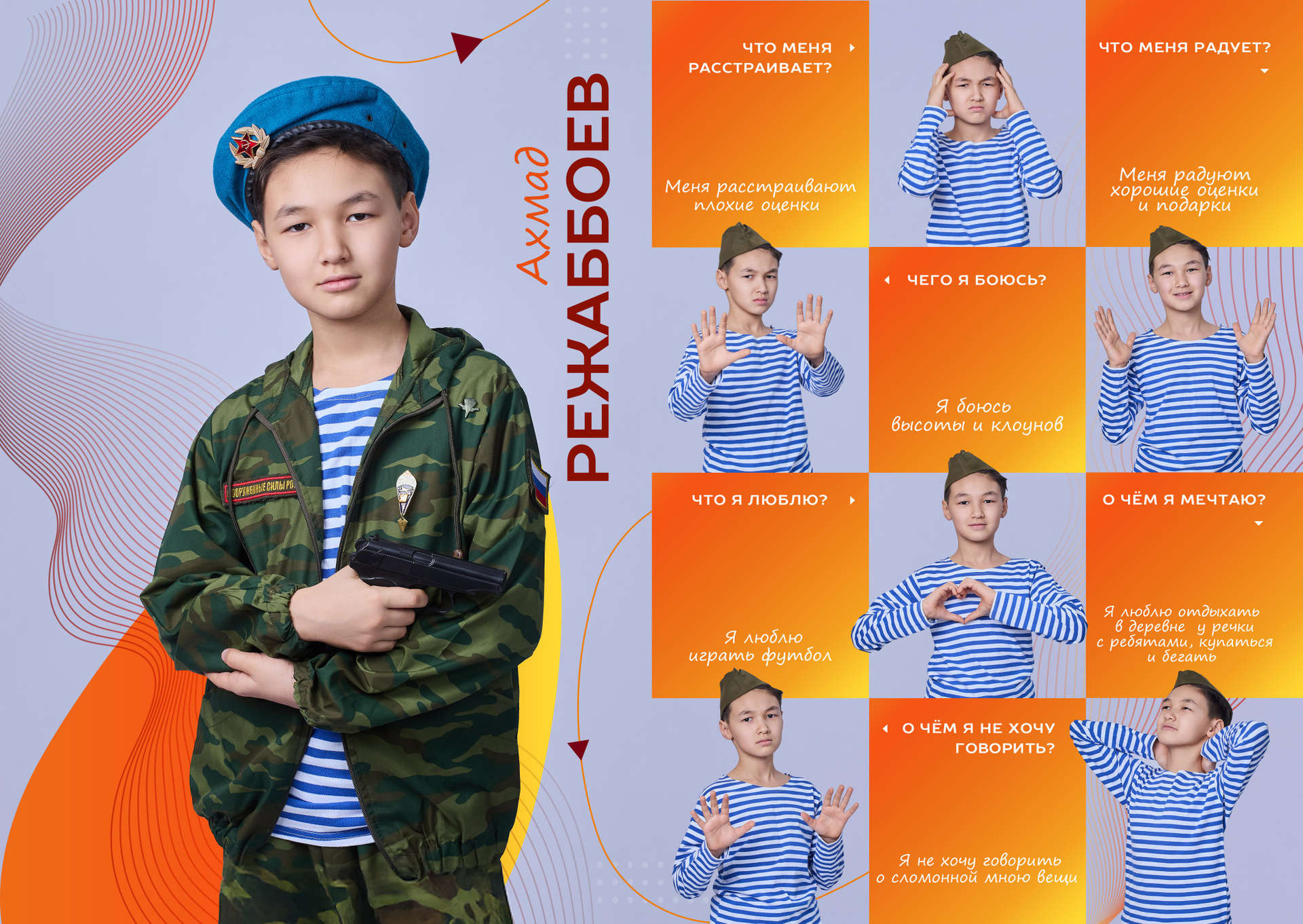 - 4 страница — 3 или 6 портретов ребенка с ответами на вопросы (без изменения стоимости)